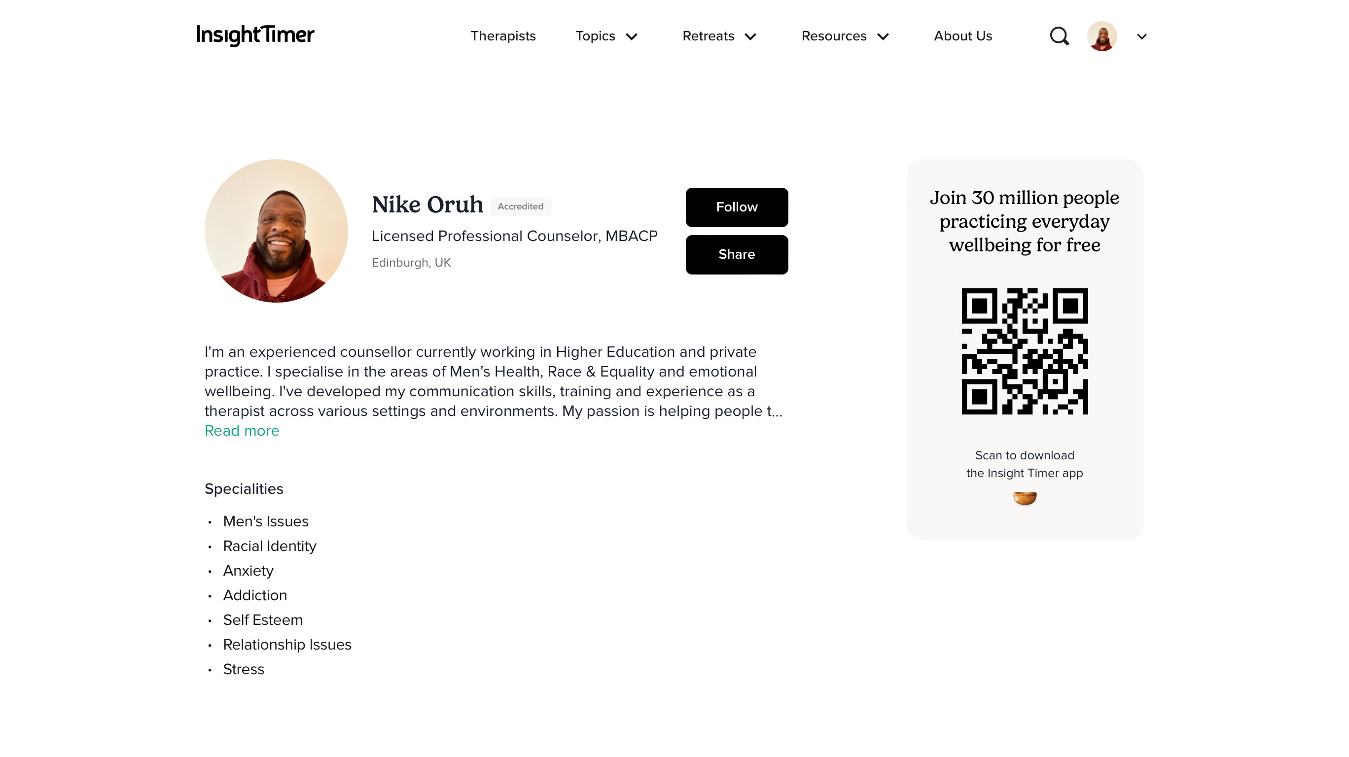 I recently set up an Insight Timer - Nike Oruh, Therapist Page , check it out.